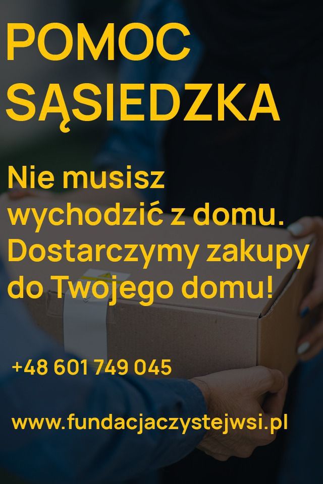 Za pomoc nic nie trzeba płacić. Zgłoszenia przyjmowane są pod nr tel. 601-749-045 lub na stronie internetowej www.fundacjaczystejwsi.pl. W zakładce "Pomoc sąsiedzka" jest rubryka z listą zakupów do wypełnienia.
